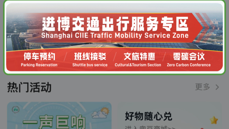 “进博月”期间景点优惠同样丰富。10月26日-11月25日,浦江游览(十六铺码头)推出参展人员专享价,支持专区及“随申行”App商城内在线优惠购票,凭有效证件核验登船即可饱览黄浦江两岸美景。11月5日-10日,有2条免费青浦微度假巴士串联朱家角古镇、蟠龙天地等景点,实现“逛进博、游上海”的无缝衔接;11月1日-11月30日,用户凭进博会证件原件通过专区预约,还可免费参观上海中国航海博物馆。